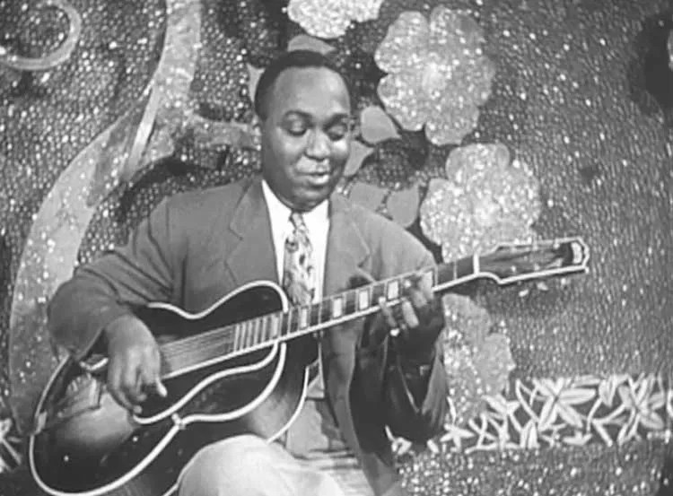 In a number of film appearances with Calloway made during this period, White can be seen exhibiting how similar his right-hand technique is to classic jazz banjo playing of the 1920s. From 1936 onwards, the guitarist was photographed with Gibson’s flagship 18-inch Super 400 guitar, perhaps speaking to the degree of visibility Calloway’s band enjoyed over the course of the decade. His tenure with the group lasted through the era’s high-water-mark years of 1935 to 1937, before he was replaced by another serious rhythm purveyor: New Orleans’ own Danny Barker. White discovered work after Calloway to be surprisingly scarce, and after serving during the Second World War he moved to St. Louis, where he briefly ran a nightclub and eventually started a successful novelty entertainment business.